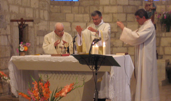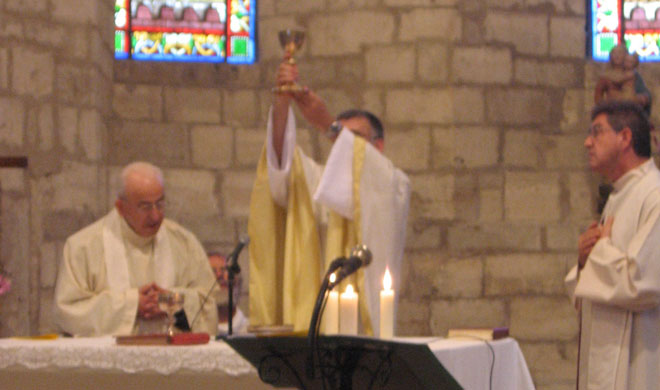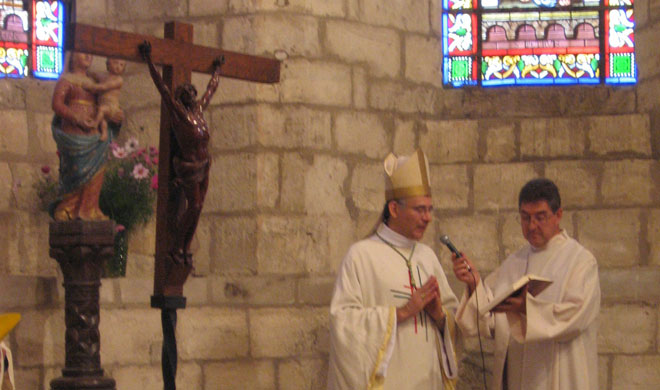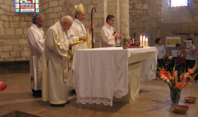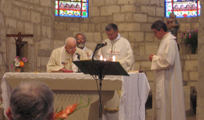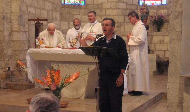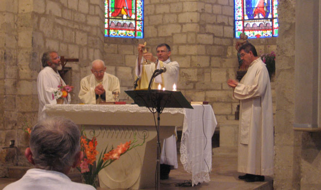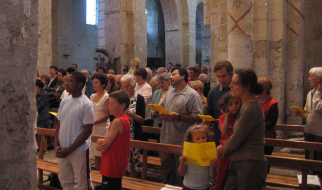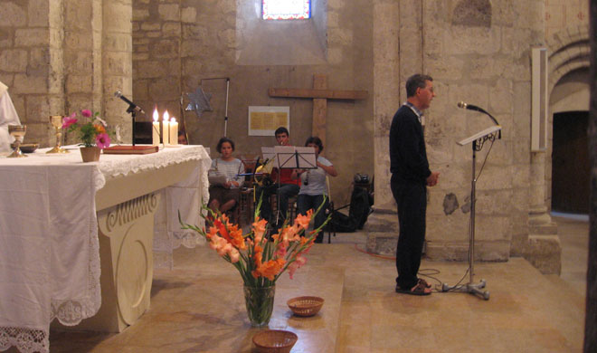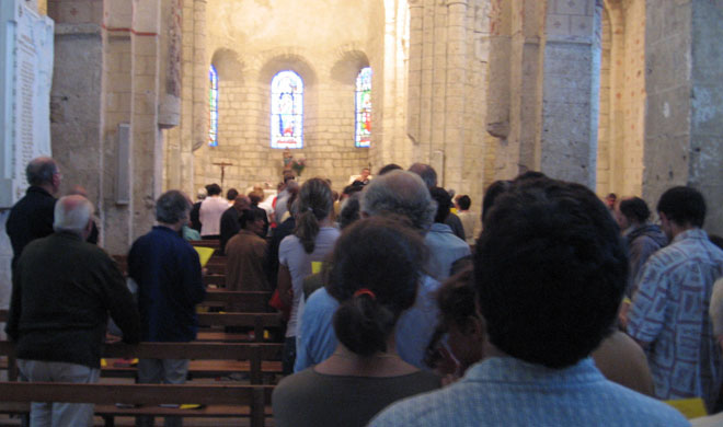 En présence de Monseigneur Pascal Roland, nous avons célébré une messe d'envoi en pèlerinage à l'église St Cyr d'Escurolles le samedi après-midi. Les pèlerins se préparaient à la marche priant et louant.