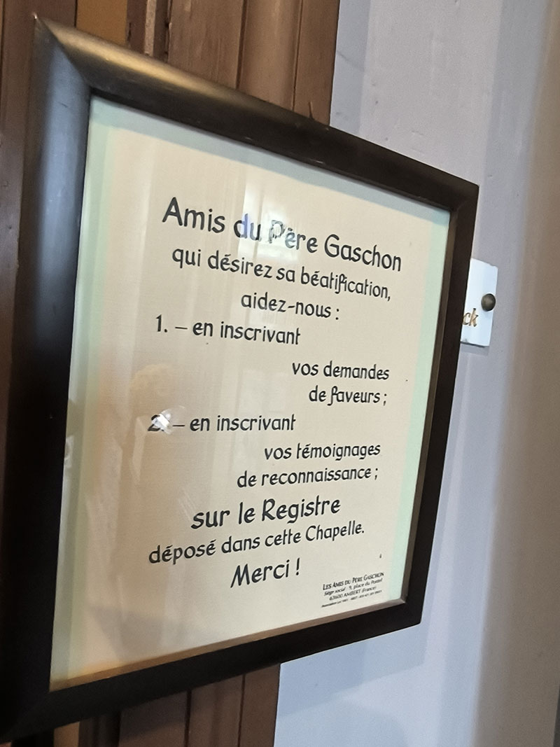 Lieu où se trouve la sépulture du Vénérable Père Gaschon (extraits de sa vie à découvrir sur ce lien)